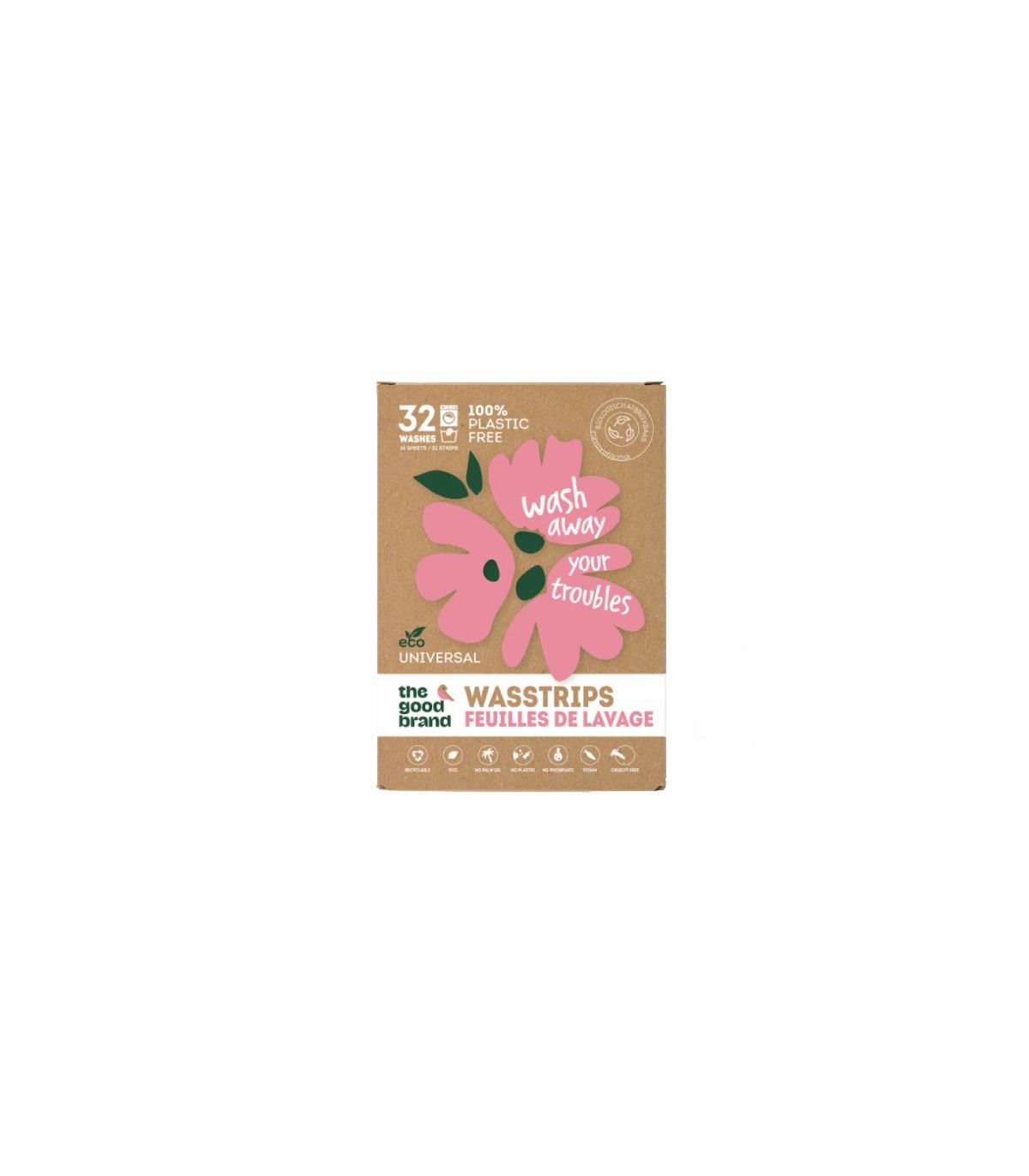 These laundry strips are a sustainable alternative to liquid detergent. They contain a highly concentrated detergent and dissolve in water. They are completely plastic-free and are packaged in a biodegradable cardboard box.