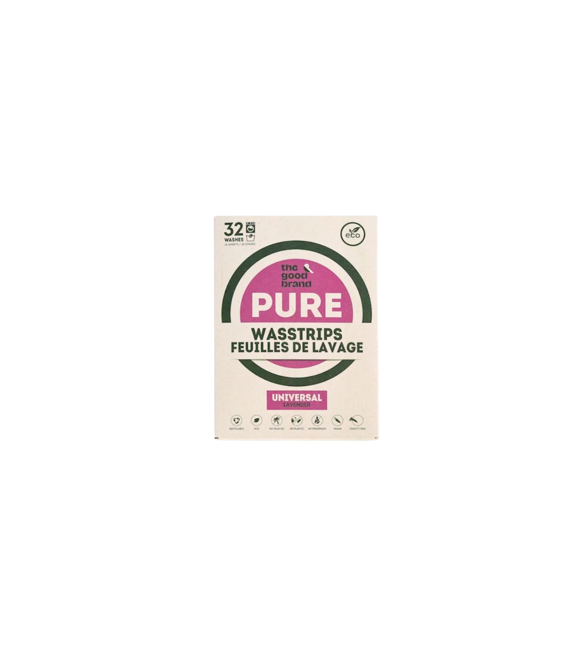 Laundry strips contain a detergent concentrate on a water-soluble strip. Suitable for washing machines and hand washes, for colored, black, and white laundry. Use with warm or cold water. With lavender scent!