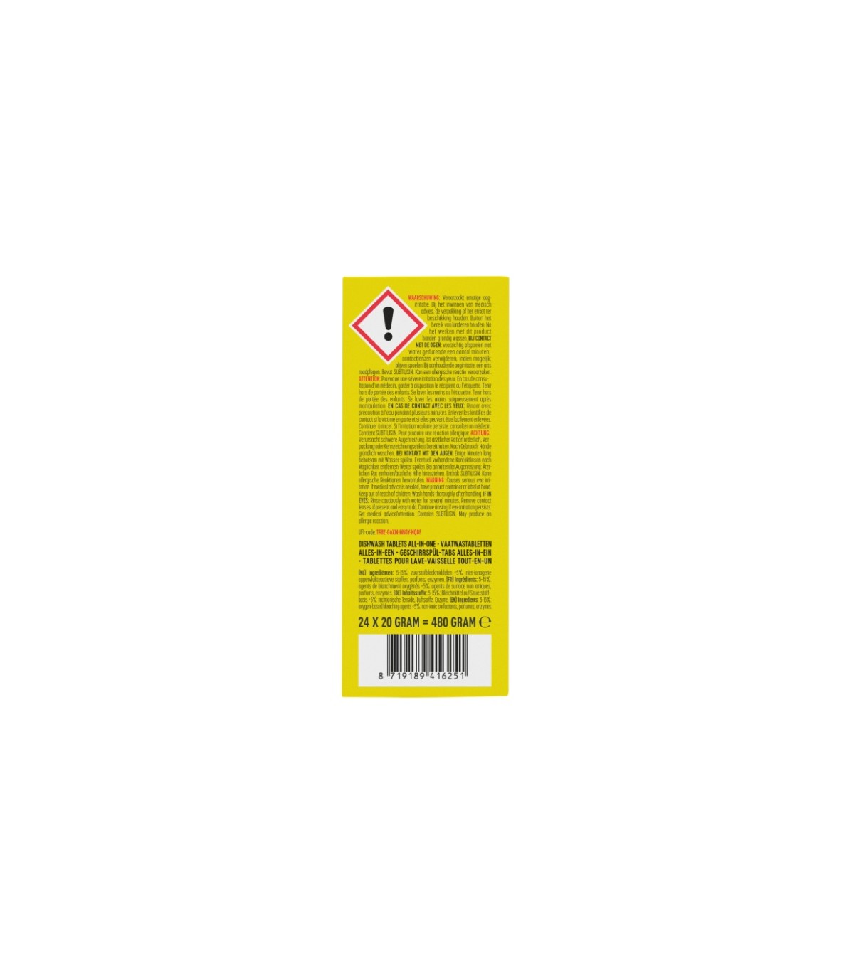 Place one tablet per wash in the designated compartment of your dishwasher. Do not unwrap – the foil will dissolve automatically. Suitable for all dishwashers.