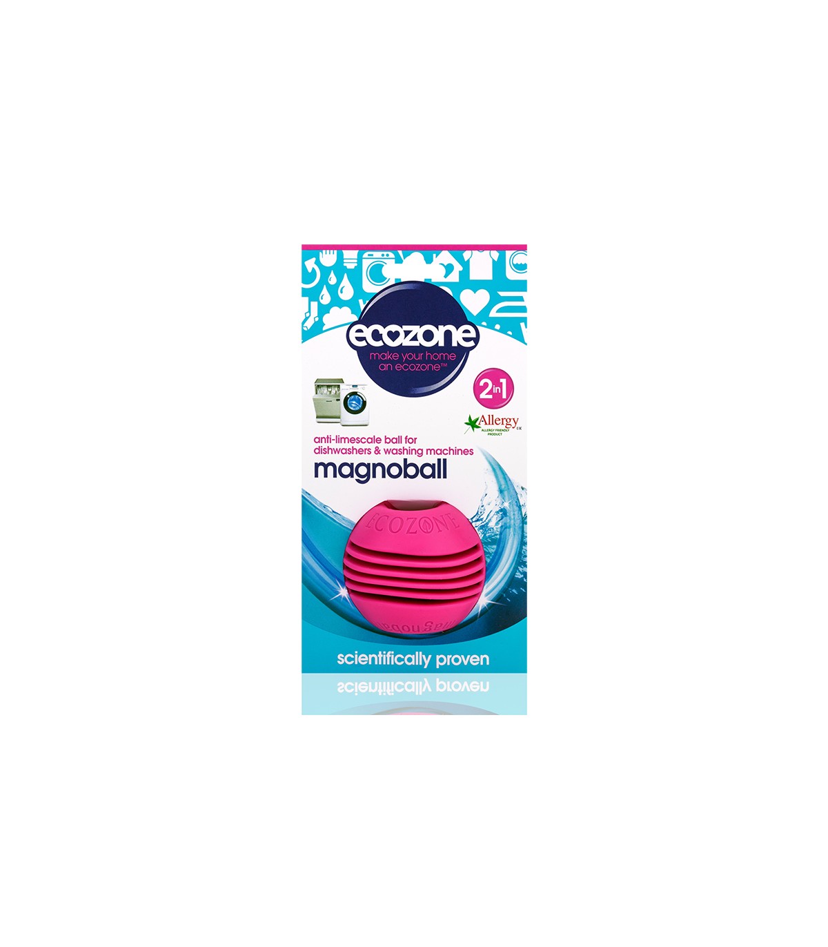 Ecozone Magnoball is a maintenance product for your washing machine and dishwasher that can help remove limescale deposits during the washing process after approximately 5 washes.
