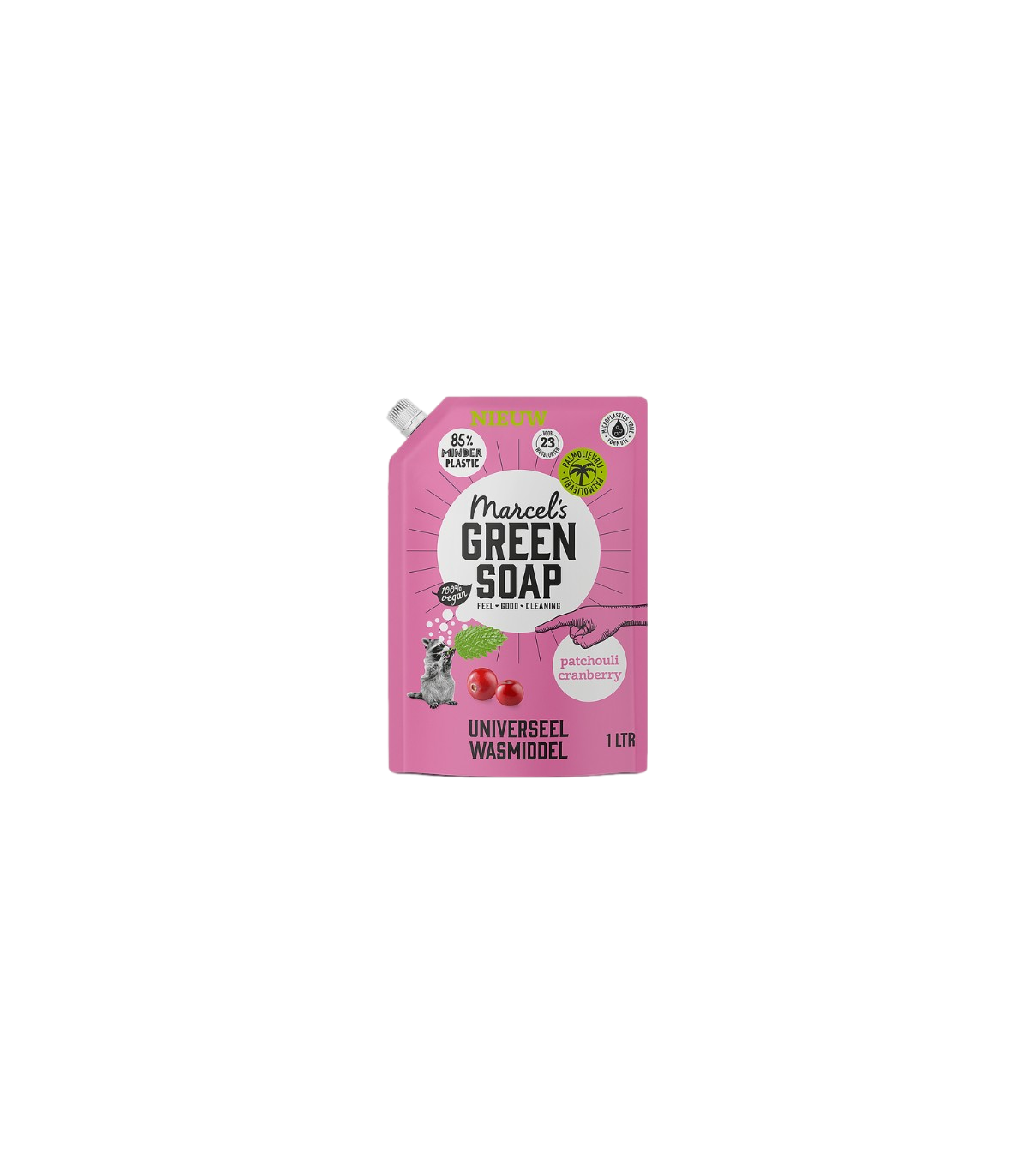 Vrij van palmolie, microplastics en schadelijke stoffen – 100% vegan, 95% biologisch afbreekbaar en heerlijk geurend met patchouli & cranberry.