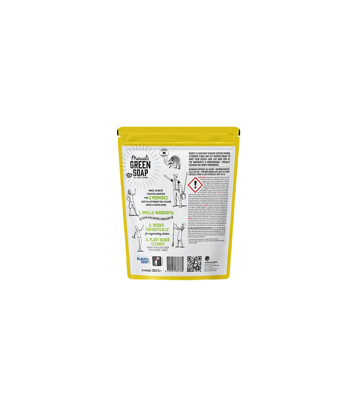 Zoals alle producten van Marcel’s Green Soap zijn ook deze vaatwascapsules 100% vegan, dierproefvrij en vrij van kleurstoffen, parabenen, fosfaten, chloor, ammonia en zuren.